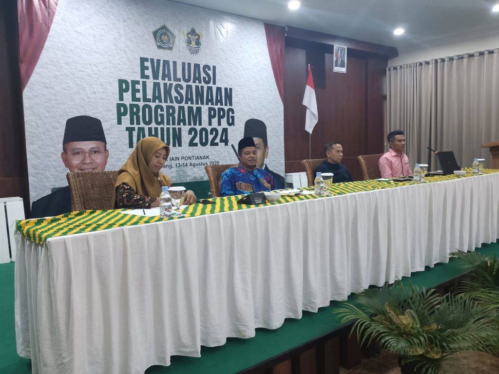 Pontianak (ppg.iainptk.co.id)_Institut Agama Islam Negeri (IAIN) Pontianak melalui Program Studi Pendidikan Profesi Guru (PPG) Fakultas Tarbiyah dan Ilmu Keguruan (FTIK) menggelar kegiatan Evaluasi Pelaksanaan Program PPG Tahun 2024. Acara berlangsung pada 13 Agustus 2025 di Gedung Serumpun Dayang Resort, Kota Singkawang, dan dihadiri oleh para dosen, pengelola, serta mitra strategis dalam penyelenggaraan PPG.